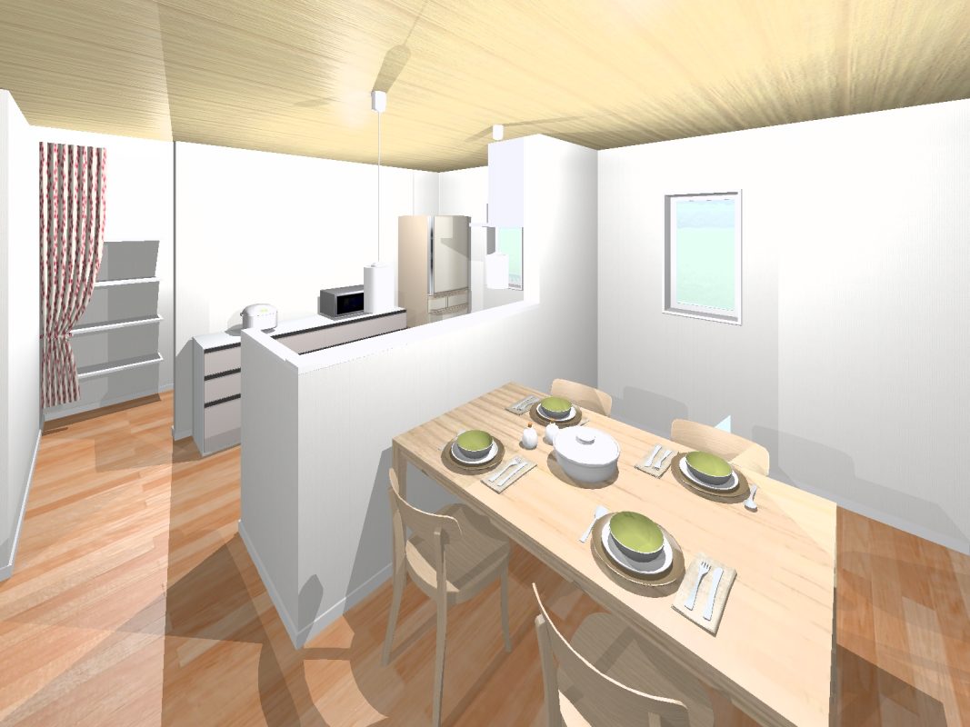 コンパクトでも、3LDKで必要な部屋は確保。 1階はキッチンを中心に、家族が和み過ごせるプランです。