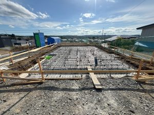 本日、基礎の配筋検査を行いました。