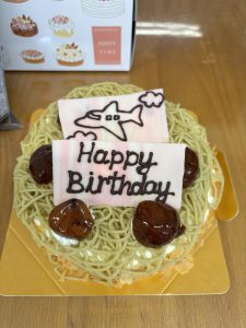 スタッフみんなで、社長の大好きなモンブランのケーキをプレゼントしました。