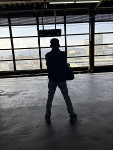 ※乗り換え待ち中の社長の後ろ姿
