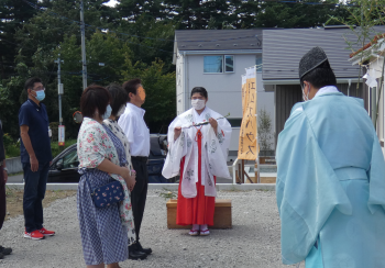地鎮祭を執り行いました⛩ 2020.09.10 スタッフブログ 9月に入っても暑い毎日で、 先日の日曜日に、地鎮祭を執り行いました~ 快晴のもと、無事に終了することが出来ました 感謝です♪ 神主さんも巫女さんも暑い中ありがとうございました ご家族そろって、工事の安全と完成を願いました 間もなく、工事がスタートします。 年内には完成予定です♪ 新居で新しい年を迎えるのが、待ち遠しいですね(^^♪ 一覧へ戻る