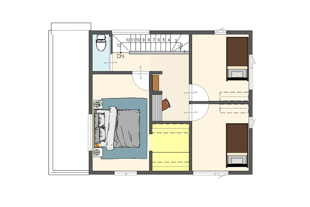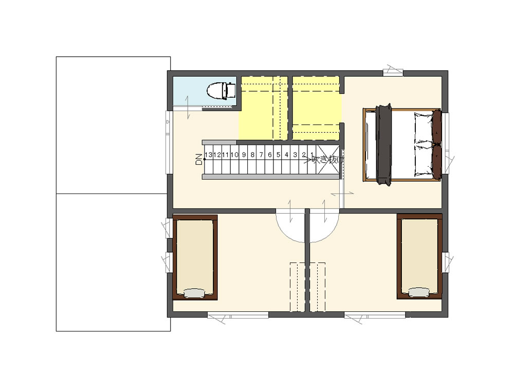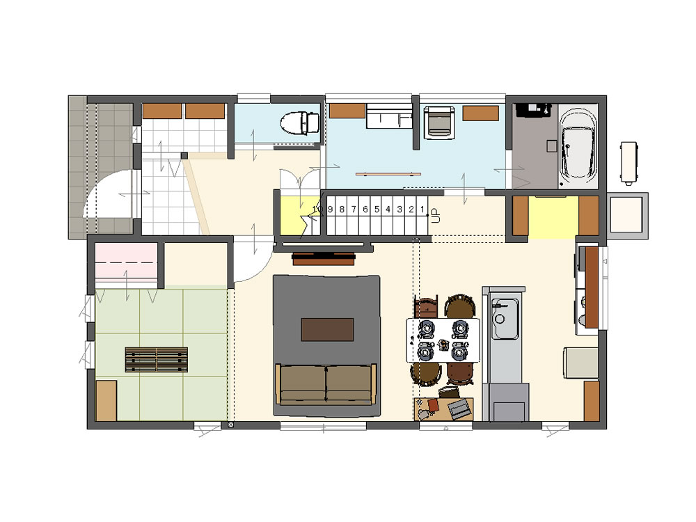 家族構成やライフスタイルの変化に柔軟に対応できる設計。 子どもの成長や働き方の変化にも寄り添い、長く安心して暮らせるちょうどいい 2階建てです。
