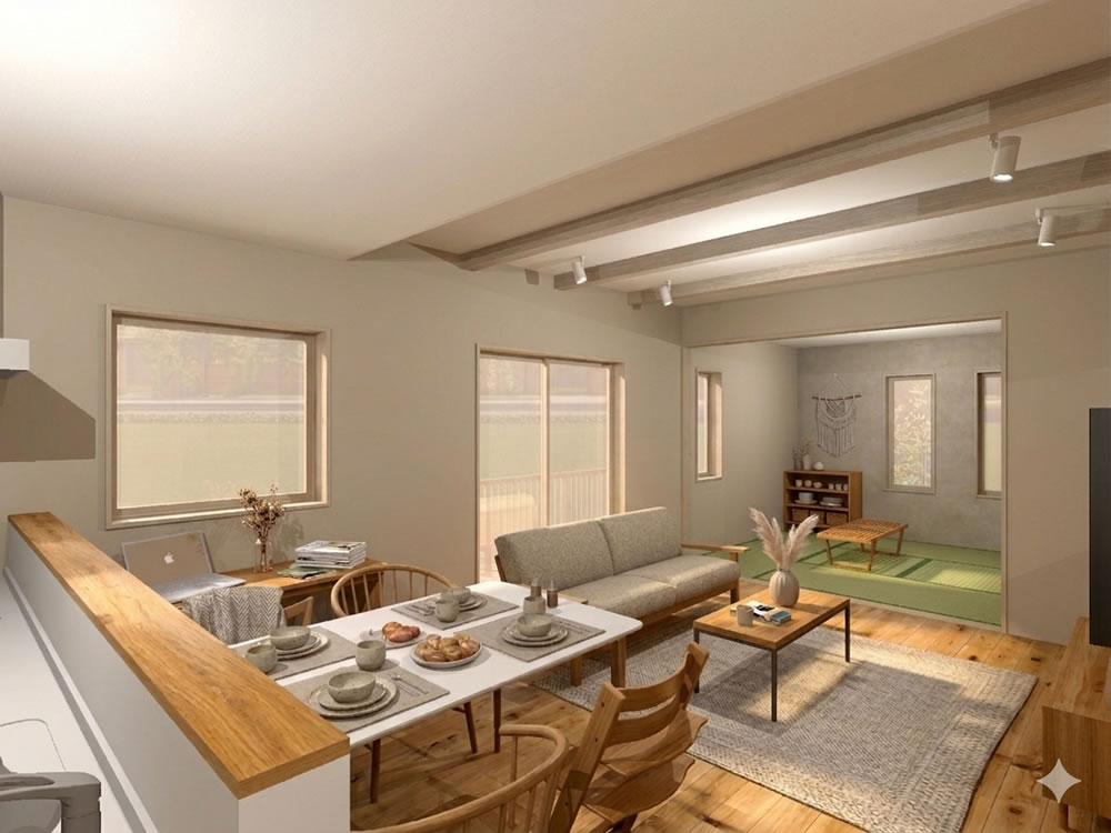 子育て中の「バタバタ」をラクにする、回遊動線の住まい。 3LDK+和室のちょうどいい広さに暮らしやすさを詰め込み、忙しい毎日でも家族との時間を大切にできるお家です。