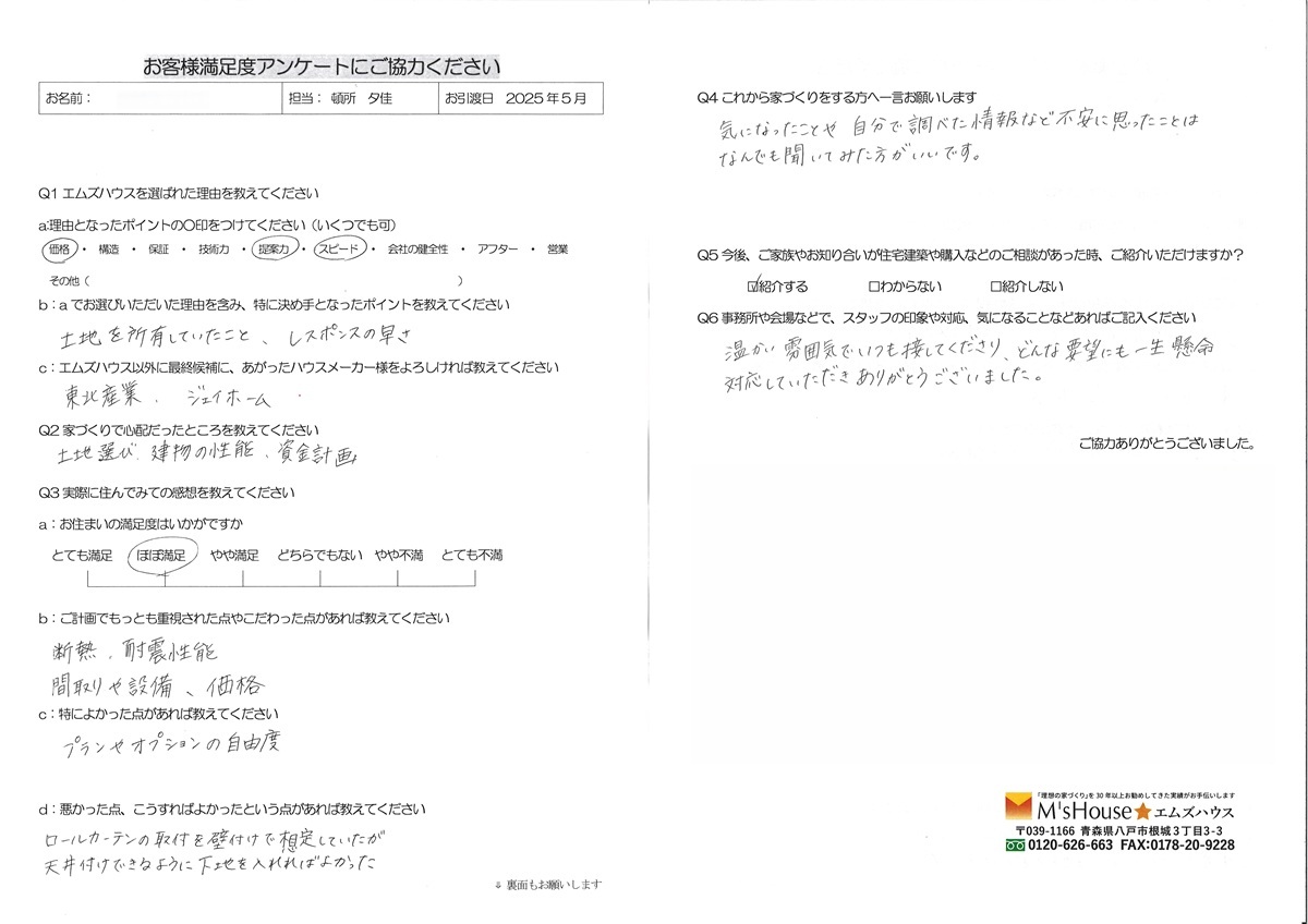 b:エムズハウス以外に最終候補に、あがったハウスメーカー様をよろしければ教えてください