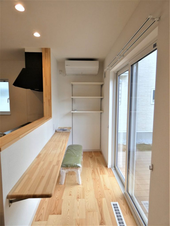 (2)キッチンの対面にはカウンターをつけて、お子さんの宿題スペースやパソコンを使える場所にしました。